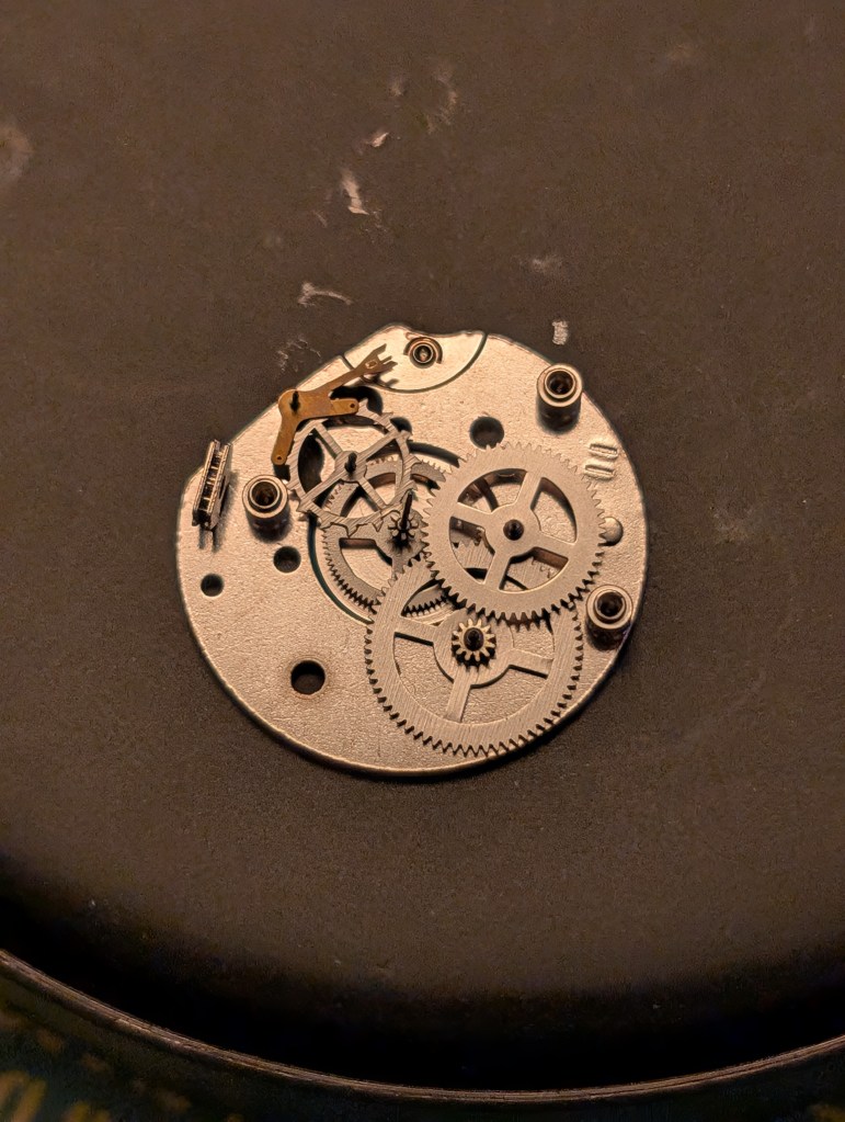 After fully assembling and oiling, it’s back together, and running! Not too badly either, about 280 amplitude, and depending on the orientation it’s close to 0s per day. The beat error is around 4ms, but I ain’t gonna touch that, lol.