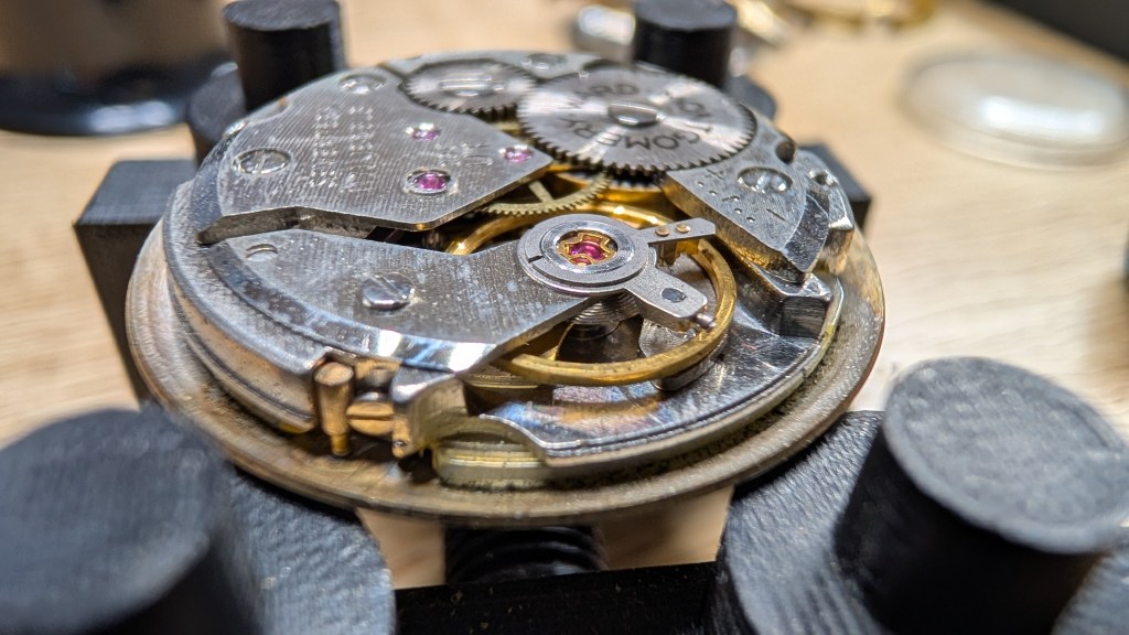 Just finished cleaning the movement, and it was dirty enough that some pieces still need some manual cleaning. I’m going to start reassembly now.