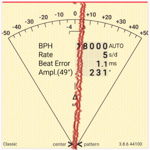 Maybe I spoke too soon though, because shortly after taking that reading, the movement stopped. Giving the balance a kick doesn’t seem to start it either. But then again, after removing the motion works, it kicked back up again. I noticed some debris/dirt on the escape wheel, so it probably just really needs to be cleaned.