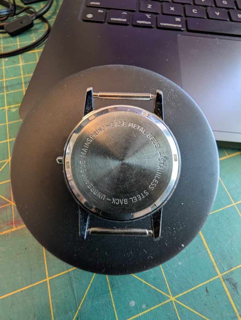 Finally got it all ready for casing, got to use my new hand-setting tools. They worked out great! I had to try a couple of times, but I definitely felt better about setting the hands, doing it with the tweezers is definitely sketch. So I get it all cased up, and go to put in one of the new gaskets, and lo and behold, I didn’t realize that the gasket measurements on Esslinger are the inner diameter, and not the outer diameter, oops. Even so, it still looked way too big, even for the reported outer diameter. So instead of trying to guess what actual size gasket to get, I ended up getting the 180 pack of a variety of gaskets. Hopefully it should get here by the end of the week. I put in one of the mis-sized flat gaskets in the meantime.