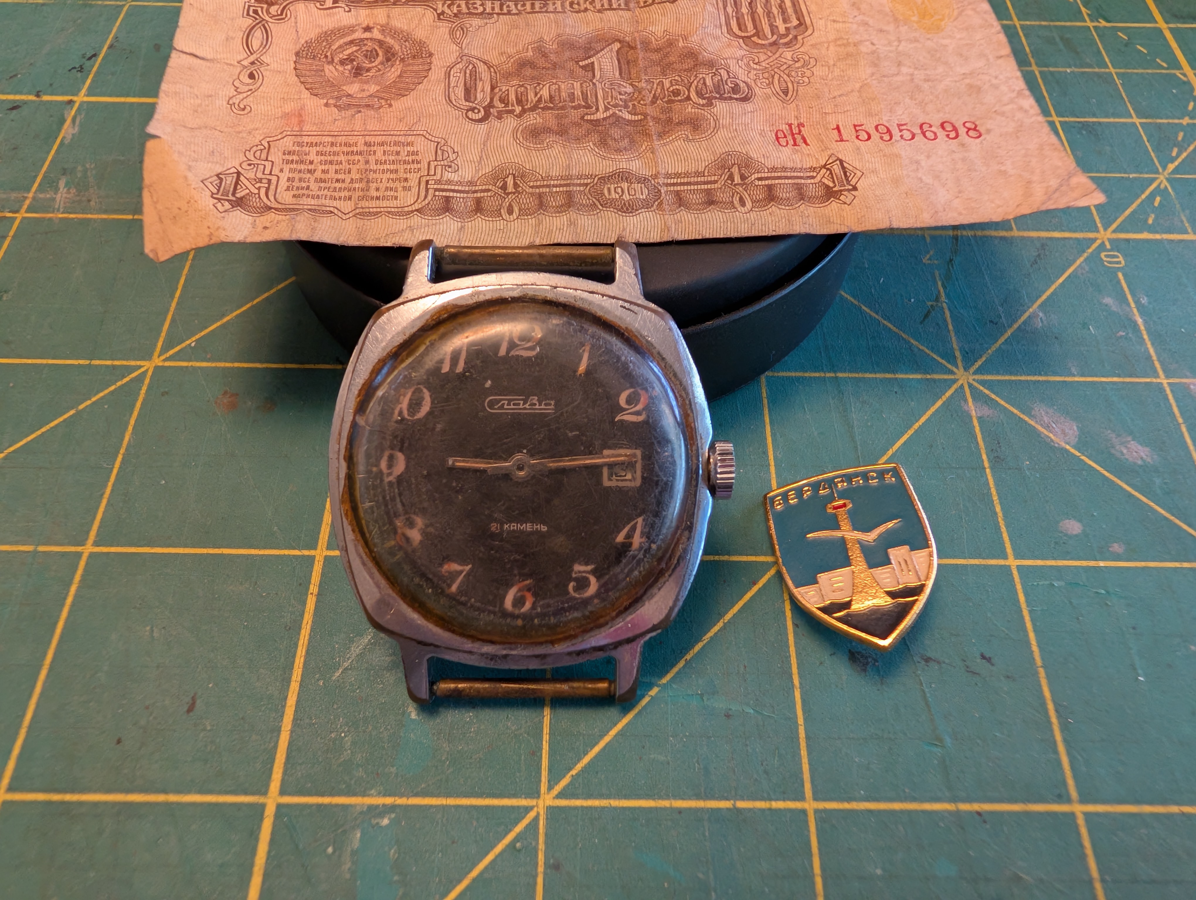 The seller included some memorabilia from the USSR: a one-ruble note, and a pin from the city of Berdiansk [Maps link]. Berdiansk is still currently listed as a city in Ukraine, but it has been under Russian occupation since 2022. Who knows what its status will be in the future, given how insane our world leaders are right now.