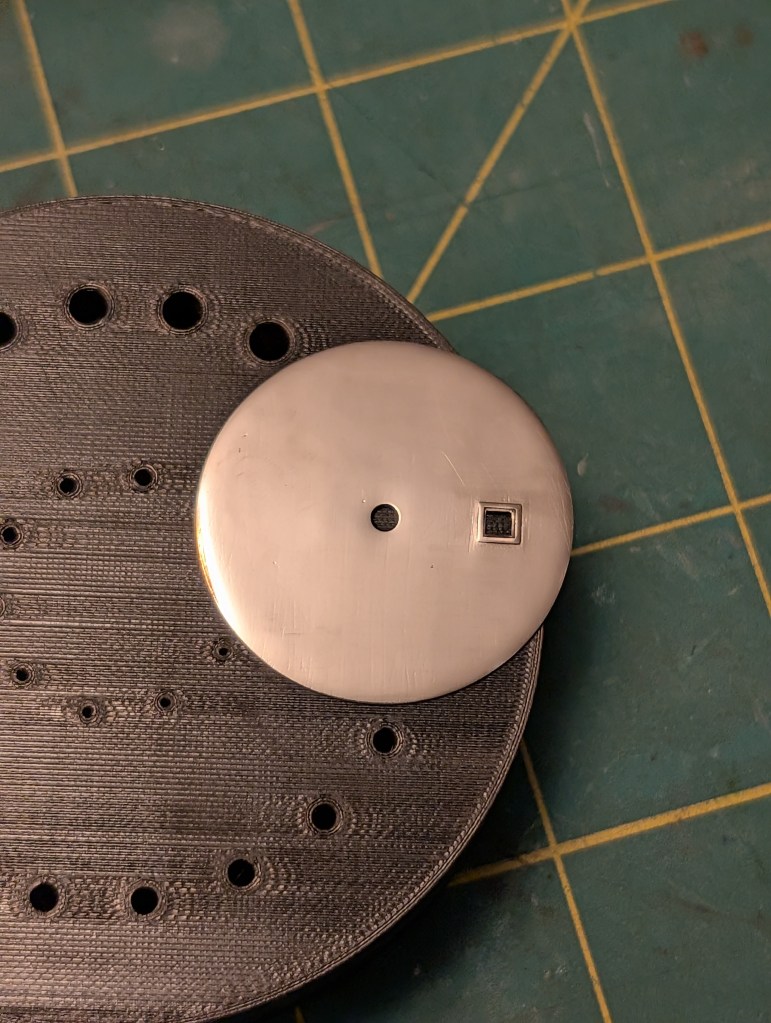 - Print the dial with the numerals and logo in clear, and the “background” with the correct color. (My printer can’t print white, so any white color must come from the background).