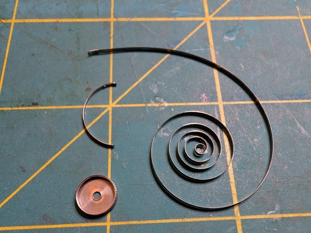I decided to disassemble the mainspring barrel, and I discovered that it’s an “old style” spring + a detached bridle. I didn’t know this was a thing: