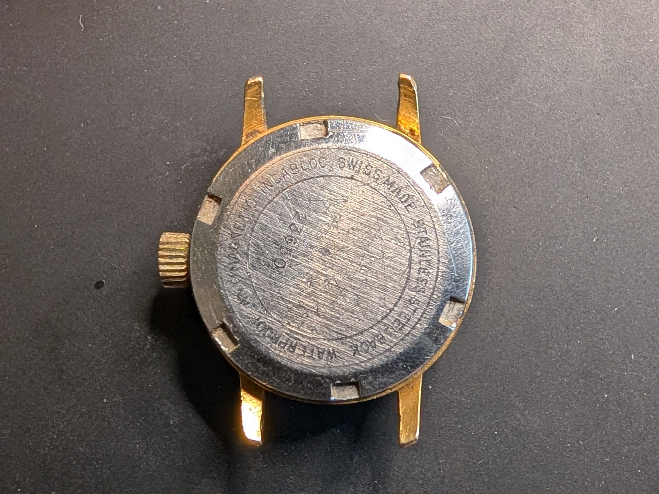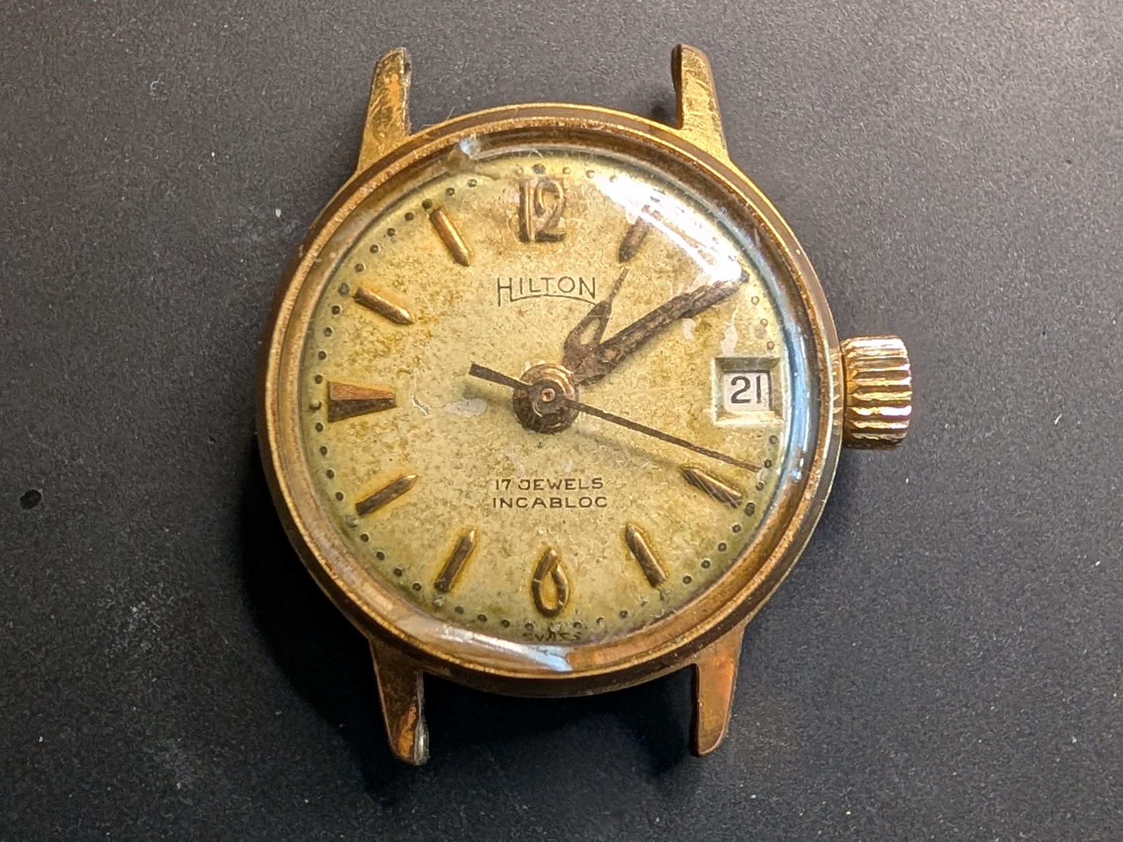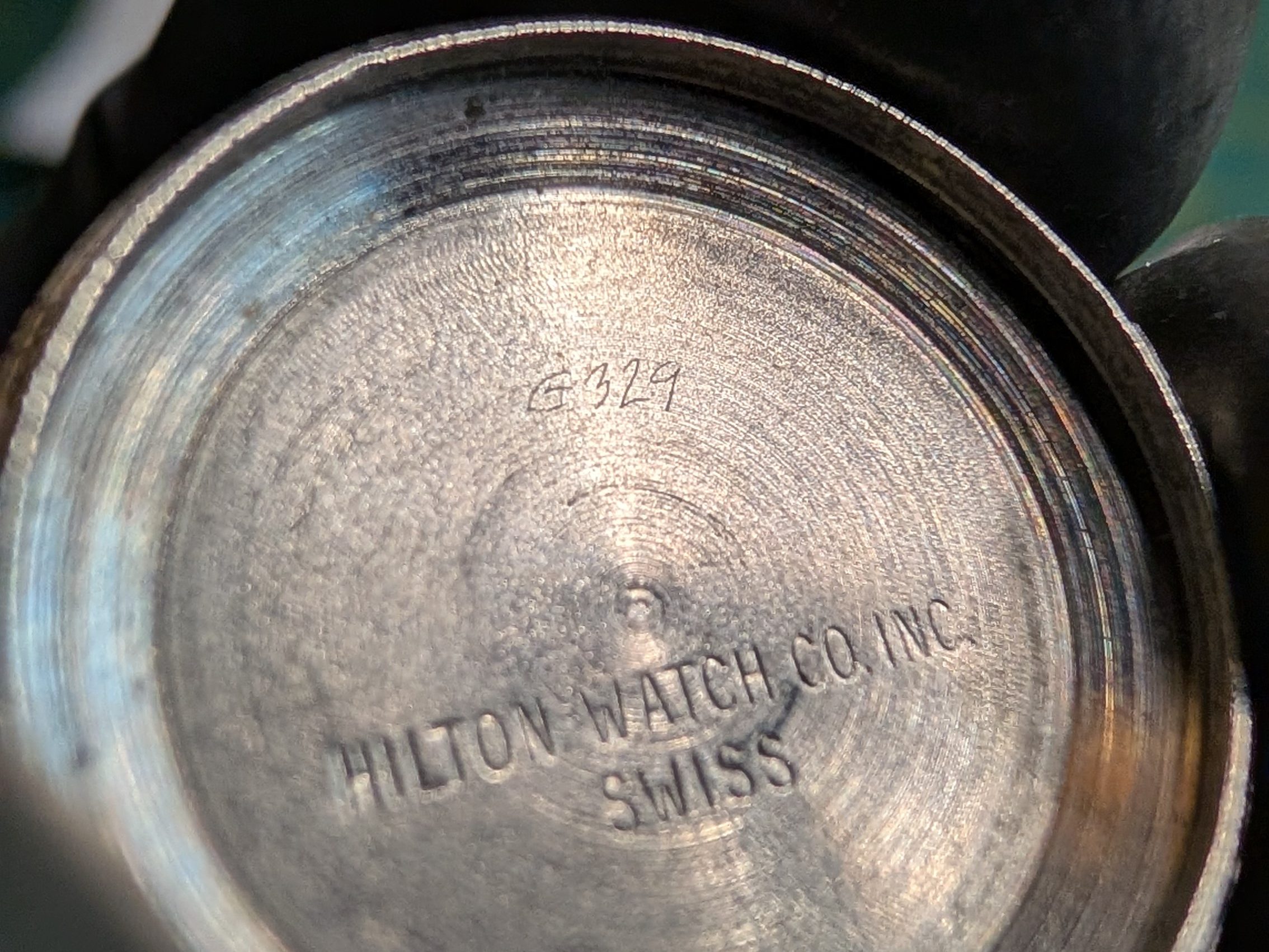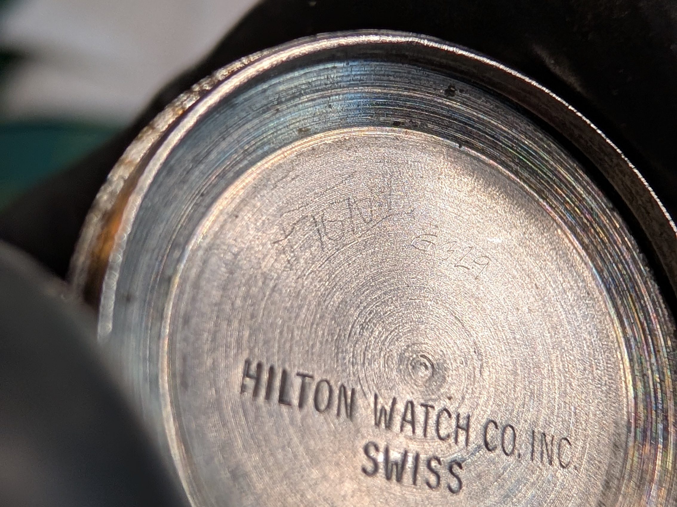 The eBay listing didn’t show the case opened, so I’m going in a little blind. After reading a bit about the Hilton Watch Company, it seems it was another branding company that wrapped Swiss movements in cheap cases, from the 1960s. My guess is that it will contain an A. Schild movement of some kind, and judging from the thickness of the case, it may actually be an automatic. The listing also mentioned that it ran for 4 hours, which is very promising.